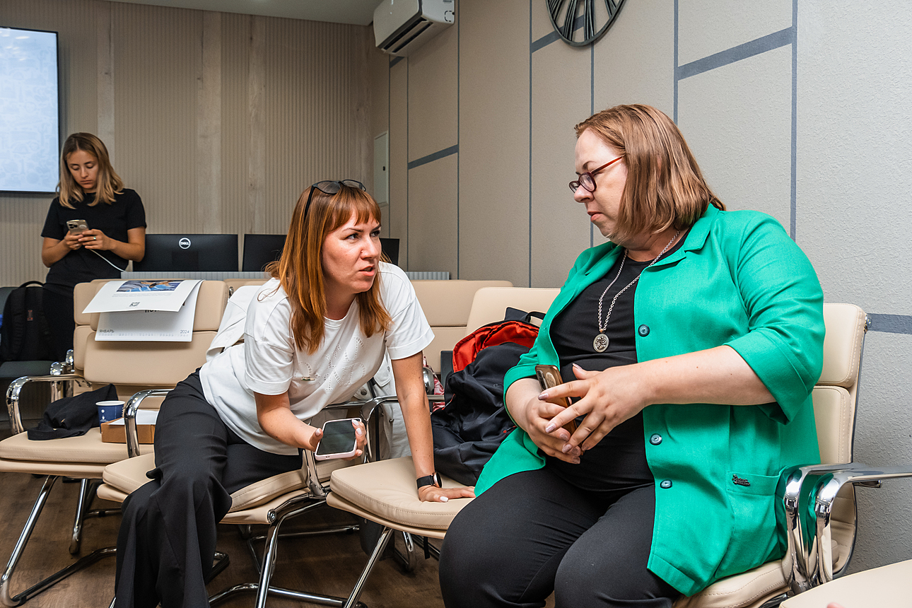 Екатерина Заломова, специалист по информационному сопровождению проекта, и Анна Малова, специалист по тиражированию опыта Ассоциации «Аутизм-Регионы», обсудили результаты проекта.