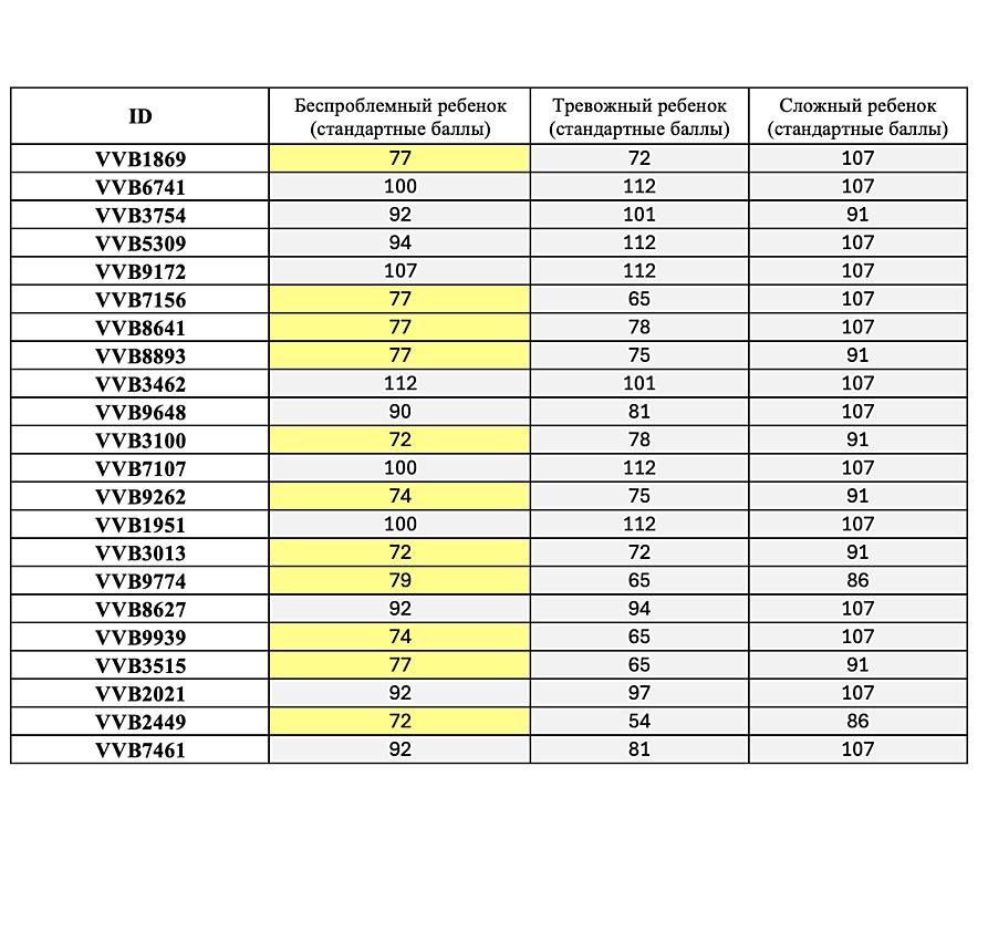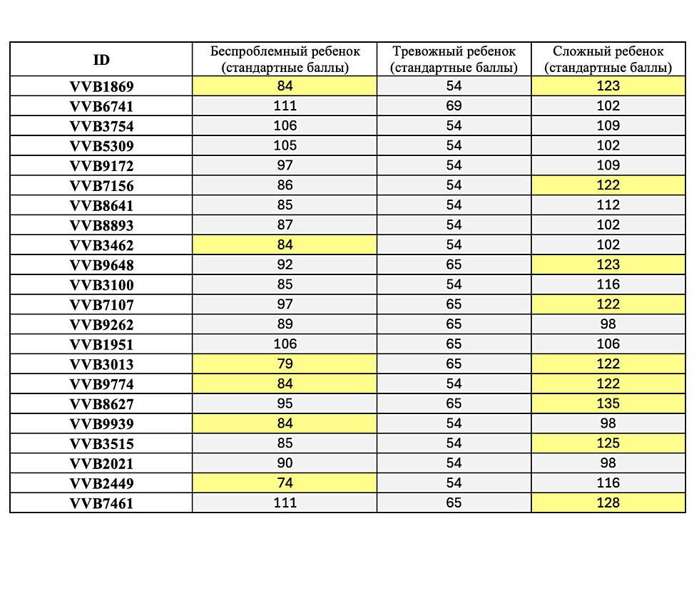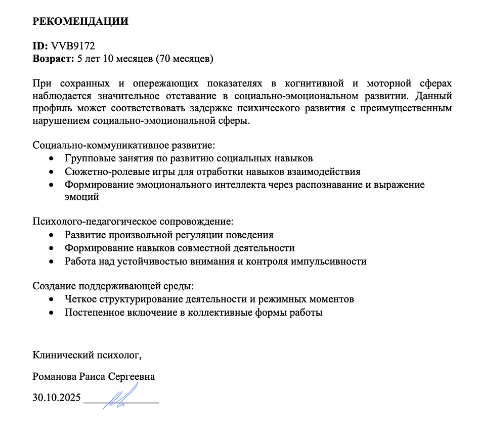 Помимо основных шкал, в рамках проекта проводилась оценка поведенческого и эмоционального состояния ребенка в повседневной жизни и во время тестирования. Это позволило отделить истинные трудности от различных ситуационных факторов, которые могли исказить результаты.