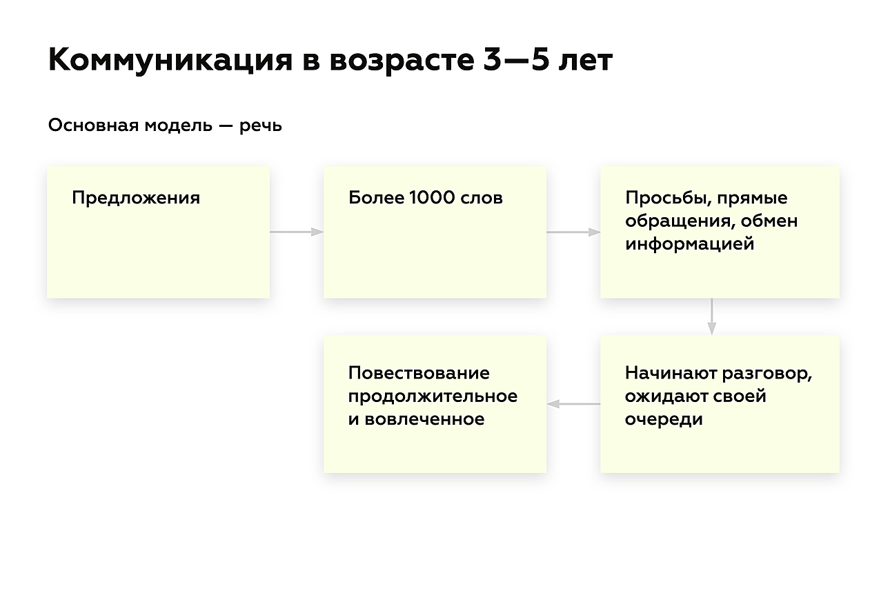 В возрасте от 3 до 5 лет дети с нейротипичным развитием могут говорить полными предложениями, используя существительные, глаголы, прилагательные. Словарный запас ребенка в этот период может вырасти до 1000 слов, и в целом этот период характеризуется мощным интеллектуальным развитием.