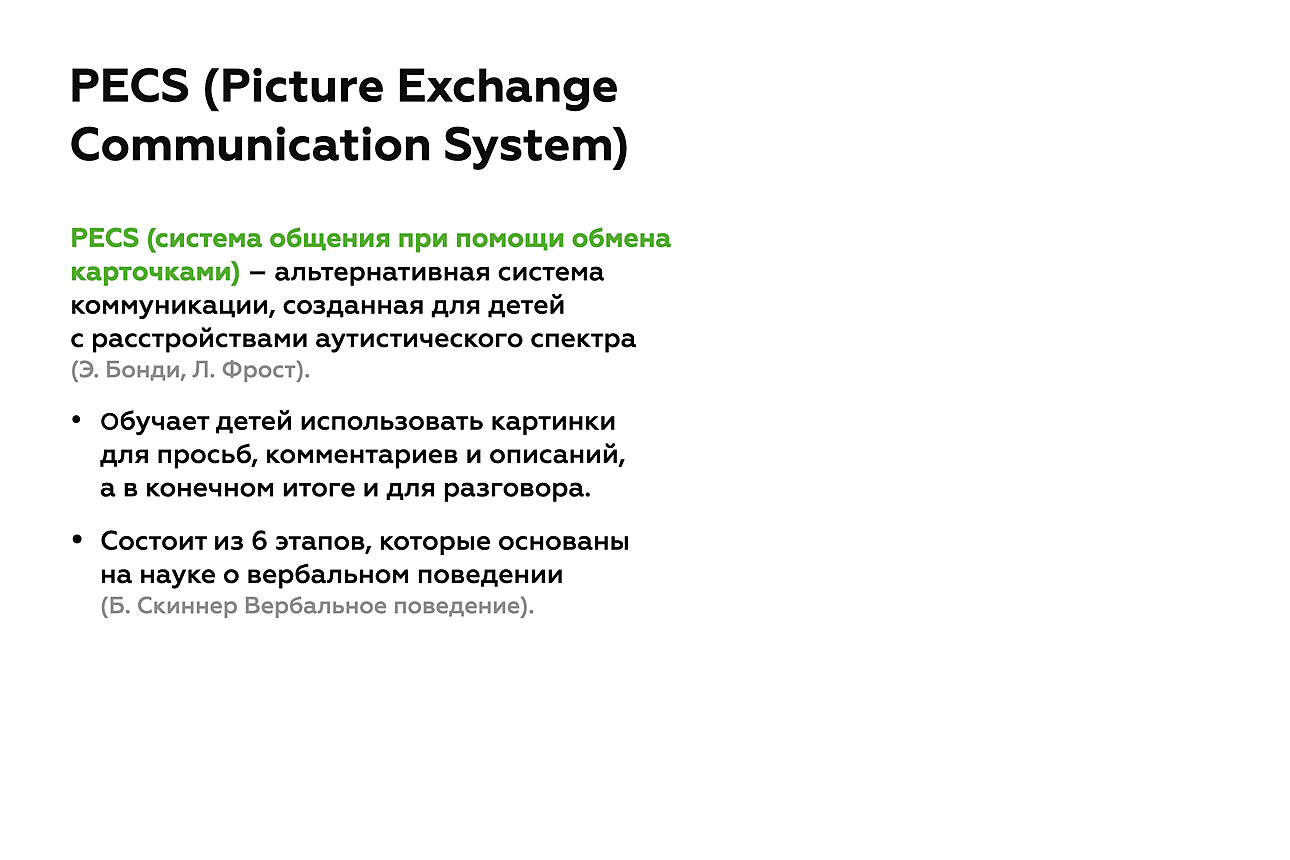 1. Систему PECS нельзя использовать, если ученик начал произносить звуки, так как это тормозит развитие речевых навыков.