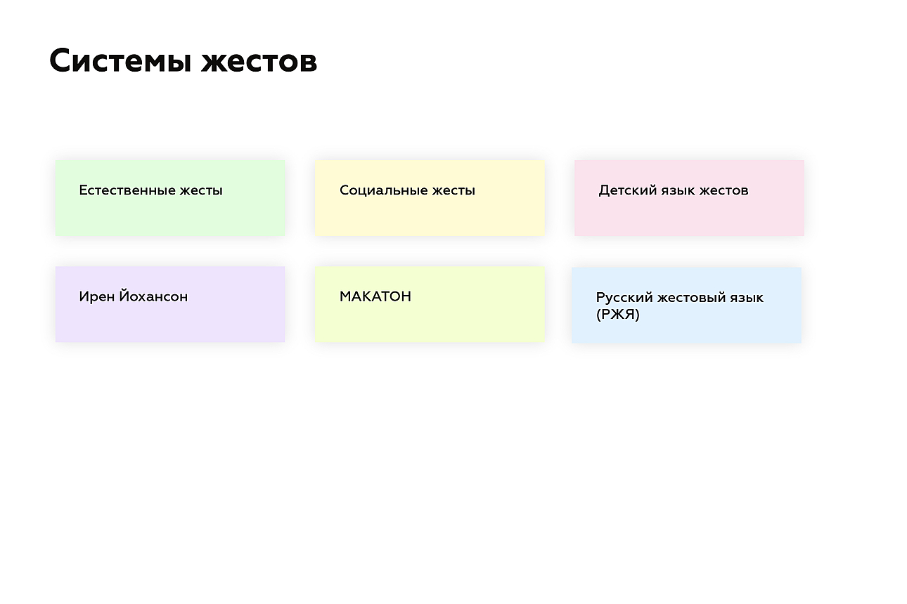 При выборе жестовой коммуникации важно учитывать несколько факторов. Прежде всего, насколько развит у ученика навык имитации. При низком уровне развития имитации сформировать навык общения с помощью жестов сложно. Кроме того, важно понять, насколько окружение, в котором воспитывается ученик, готово понимать и использовать жесты. Если команда, работающая с ребенком, готова к введению жестовой коммуникации, то для этого можно использовать жесты из русского жестового языка (РЖЯ) или взять за основу жесты системы Макатон, которые являются более простыми в использовании. Важен также уровень развития мелкой моторики ребенка; чем больше жестов может повторить за взрослым ребенок, тем разнообразнее будет коммуникация.