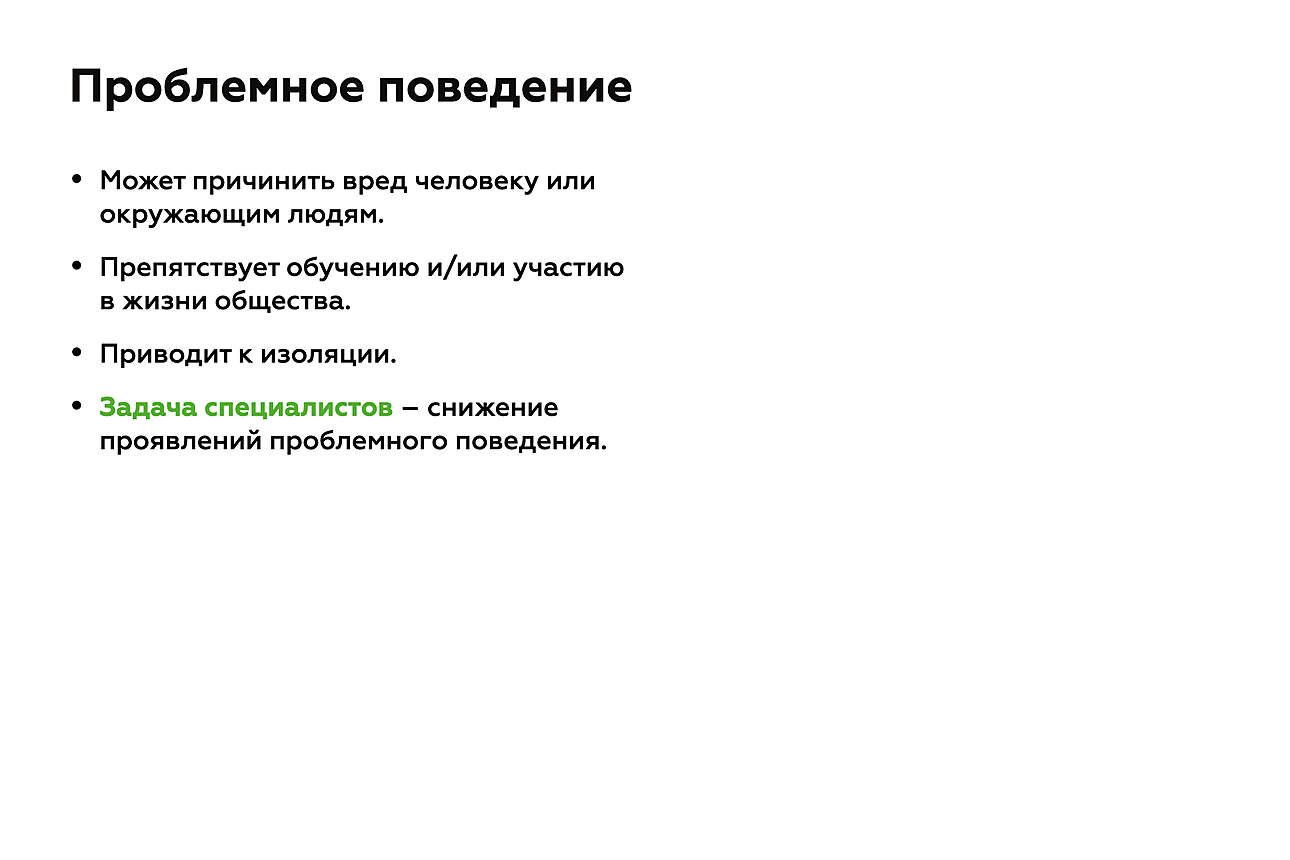 Когда мы говорим «проблемное поведение» или «нежелательное поведение», подразумеваем, что оно: