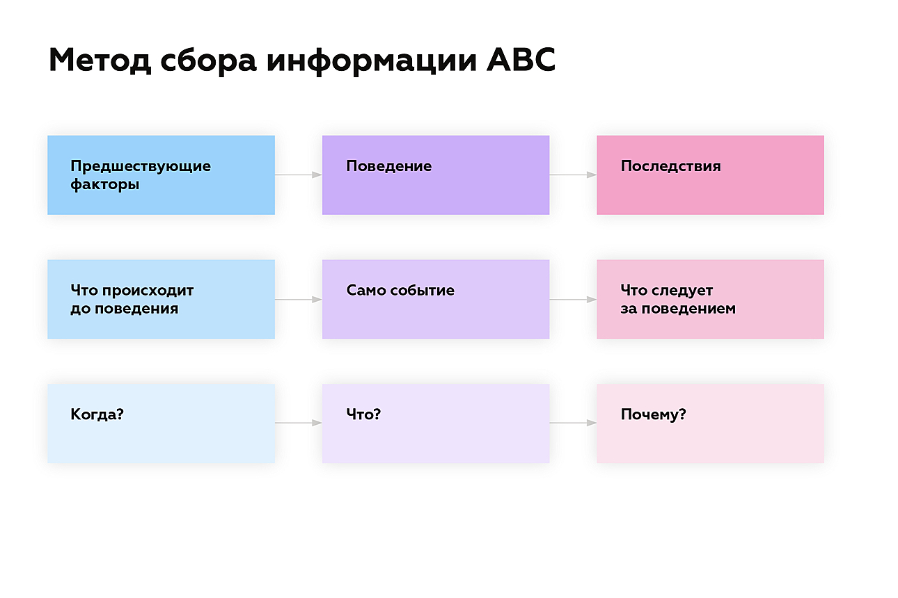 Чтобы понять, что именно вызывает проявление нежелательного поведения, нам необходимо собрать следующую информацию: