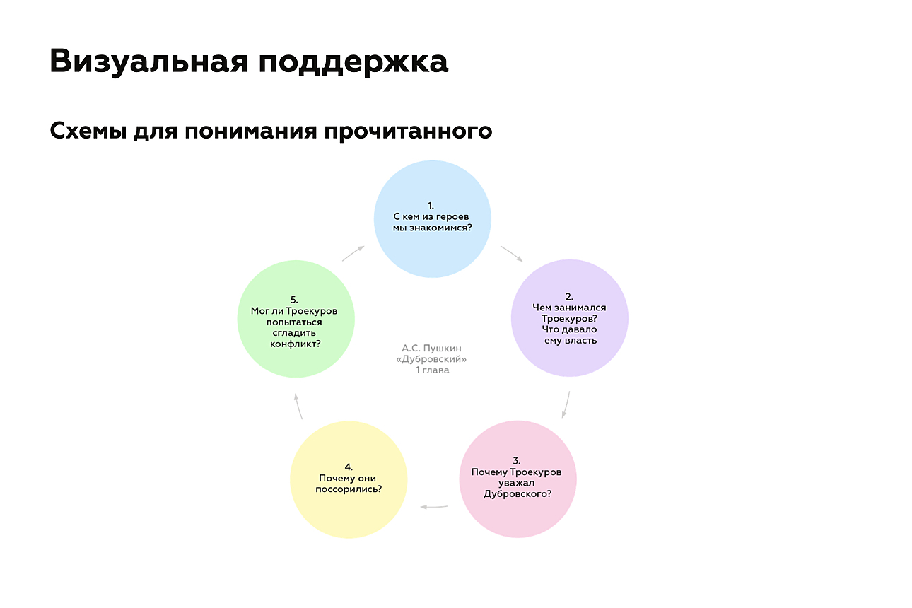 Еще одна частая проблема — неспособность ученика пересказать текст, даже при условии того, что он хорошо его понял. В такой ситуации хорошей поддержкой будет составление письменного плана пересказа. На начальных этапах это могут быть самые простые вопросы: