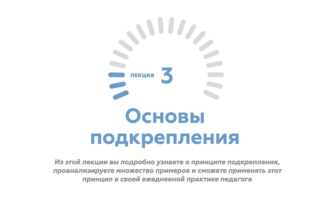 Подкрепление1 — это процесс, а не простое однократное действие. Когда мы говорим о подкреплении, мы имеем в виду возникновение определенного поведения2, за которое ребенка поощряют, что в конечном итоге укрепляет это поведение. Подкрепление как процесс — это применение педагогом поощрения желательного поведения, чтобы увеличить вероятность повторения такого поведения в будущем. Из предыдущей лекции мы узнали, что обучение становится более эффективным при наличии итогового приятного или удовлетворяющего поощрения для ученика. При этом ученик сам должен знать и предвидеть, какую награду хочет получить за успешное выполнение задачи. Соответственно, логично предположить, что процесс обучения протекает менее эффективно, если ученик получает награду, к которой он равнодушен, или же не получает ничего. Если на каждом этапе обучения ученик станет получать небольшие вознаграждения, он будет испытывать приятные эмоции и удовлетворенность от проделанной работы. И, как мы уже отметили, какая награда является привлекательной, а какая нет, определяет сам ученик, а не мы с вами.