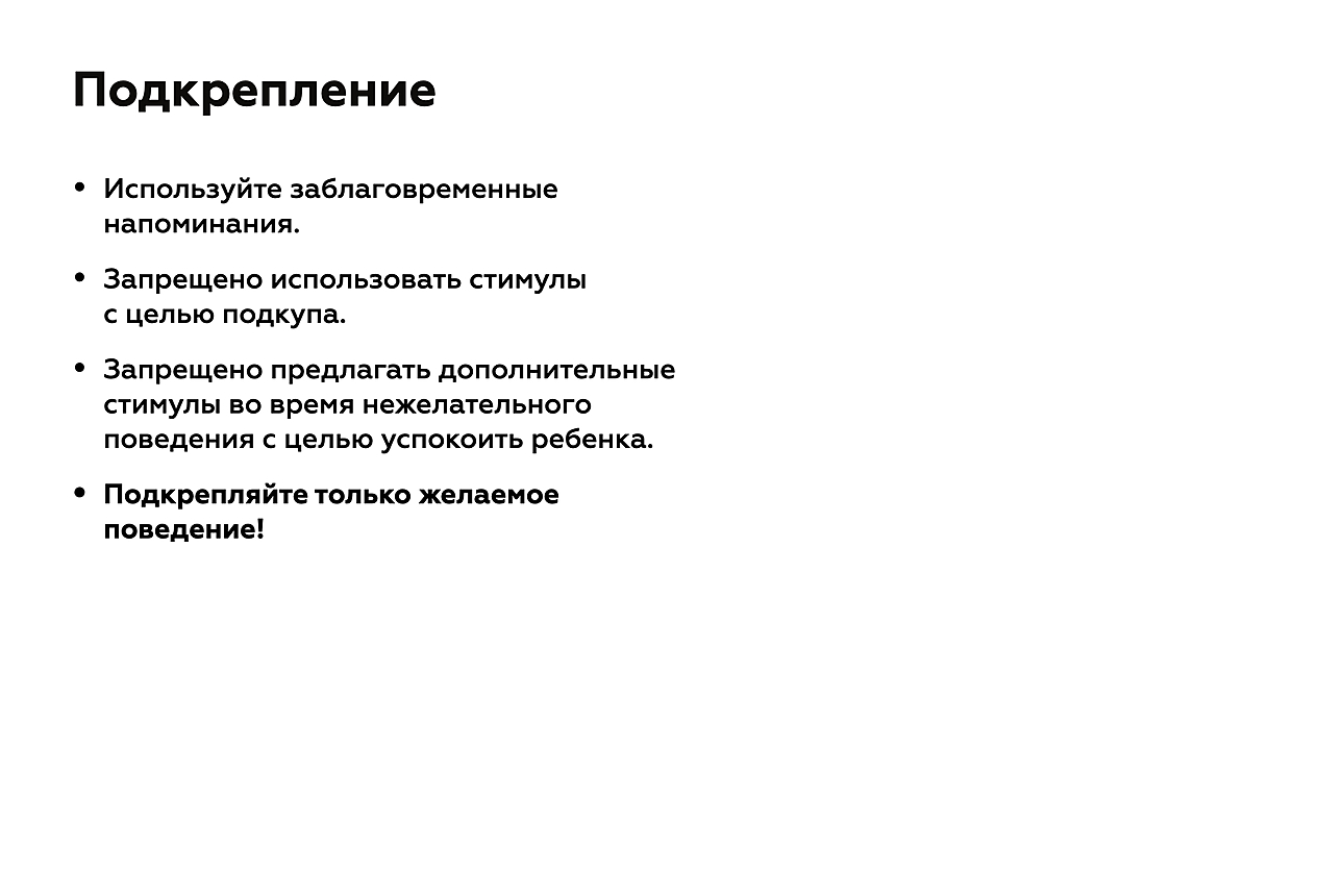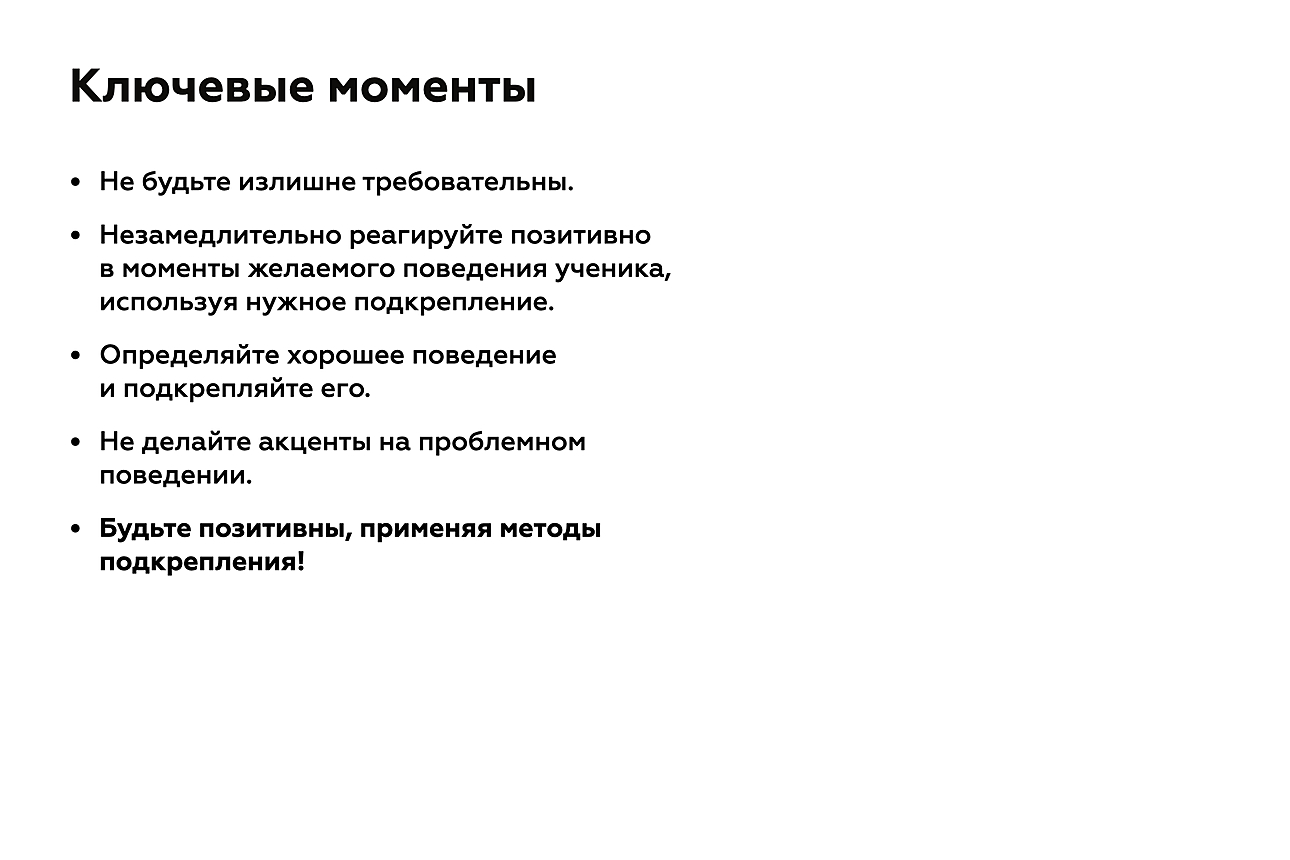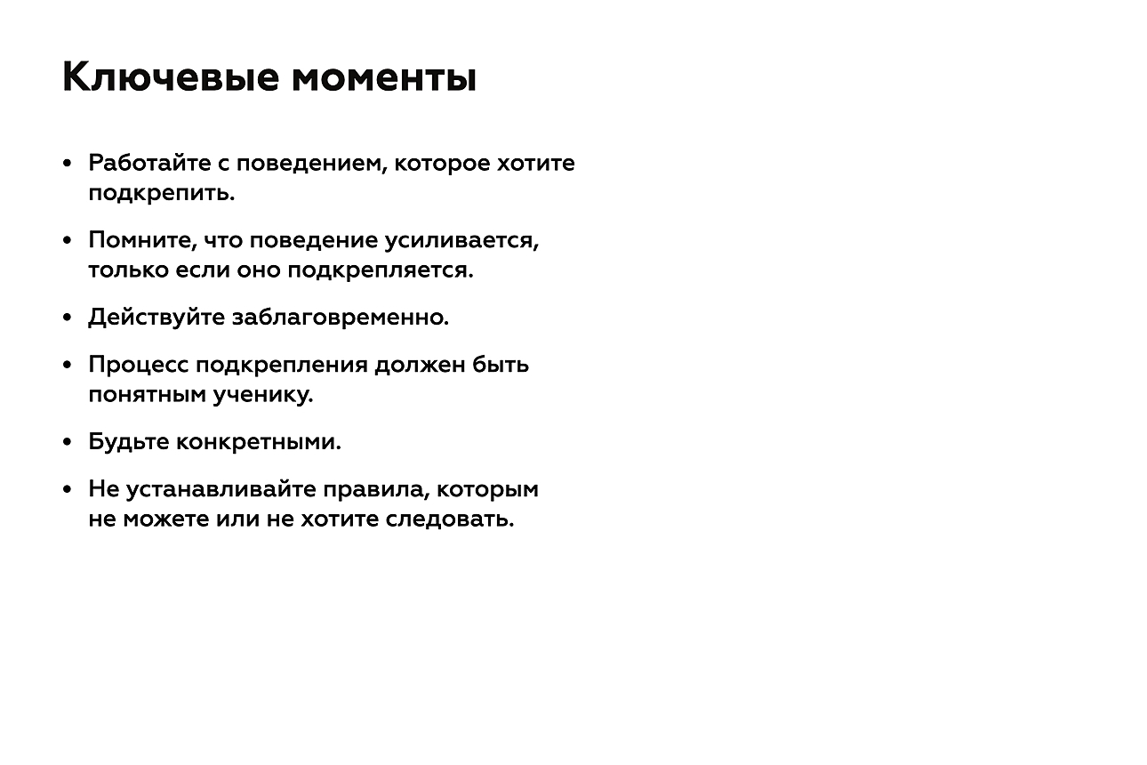 - Помните, что поведение усиливается, только если оно подкрепляется.