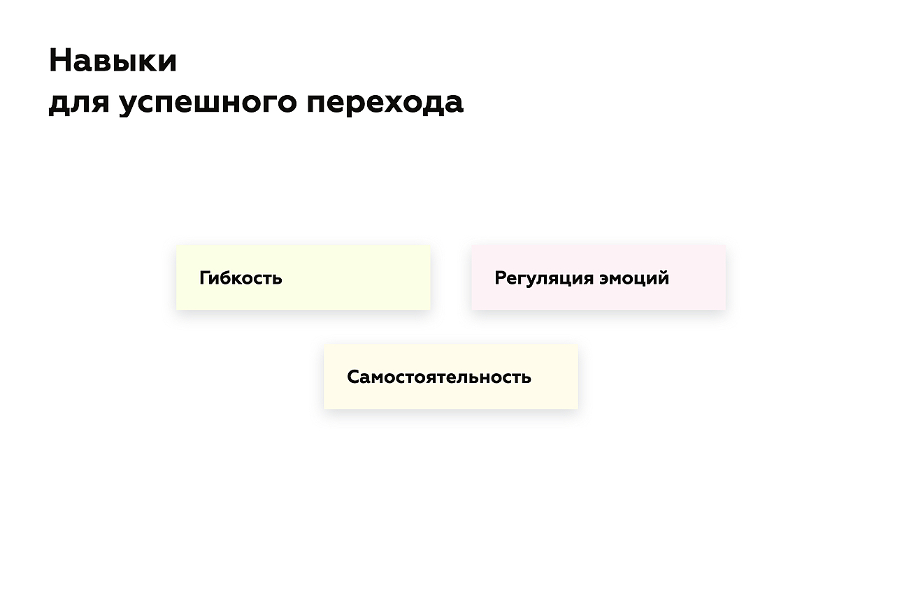 Для успешного преодоления любого переходного периода ученику необходимы гибкость, способность регулировать свои эмоции, умение преодолевать трудности, самостоятельность и умение принимать решения. Все эти навыки и умения значительно увеличивают шансы на успех.