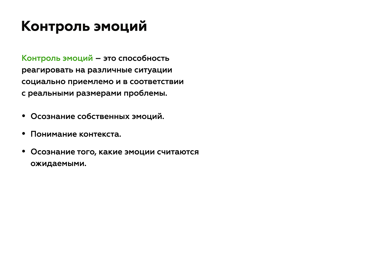 Гибкость проявляется и в способности контролировать свои эмоции. Для контроля над эмоциями необходимо наличие некоторых условий. Давайте вернемся к примеру ученика, который узнал, что урок заканчивается и про айсберги больше поговорить не удастся. Если он обладает способностью контролировать свои эмоции, то ситуация будет развиваться следующим образом. Ученик недоволен тем, что все закончилось, он признает, что ему грустно, он разочарован и что это беспокоит его в гораздо бóльшей степени, чем других учеников в классе. Для него это изменение оказывается более важным, чем для них. Он волен выразить свои негативные эмоции, потому что хочет, чтобы остальные, включая учителя, знали, как ему нравится эта тема. Он может сказать: «Ну вот. Не хочется заканчивать, я серьезно расстроен». Его реакция может быть очевидной, но при этом спокойной, потому что в данной ситуации она является проявлением одним из возможных, ожидаемых вариантов поведения. С другой стороны, ребенок, которому трудно контролировать эмоции, может отреагировать самым неожиданным даже для самого себя образом. Например, он может крикнуть: «Конечно, вы вечно так! Никогда не можете рассказать до конца!!!» Он не осознает, что в коллективе, где он находится, никто не ожидает такого проявления эмоций. Вероятно, он в этот момент не в состоянии сказать себе: «Все в порядке. Спокойно. Выскажи свое недовольство, но спокойно, не кричи». А ведь адаптивность и способность управлять эмоциями — залог самостоятельности.