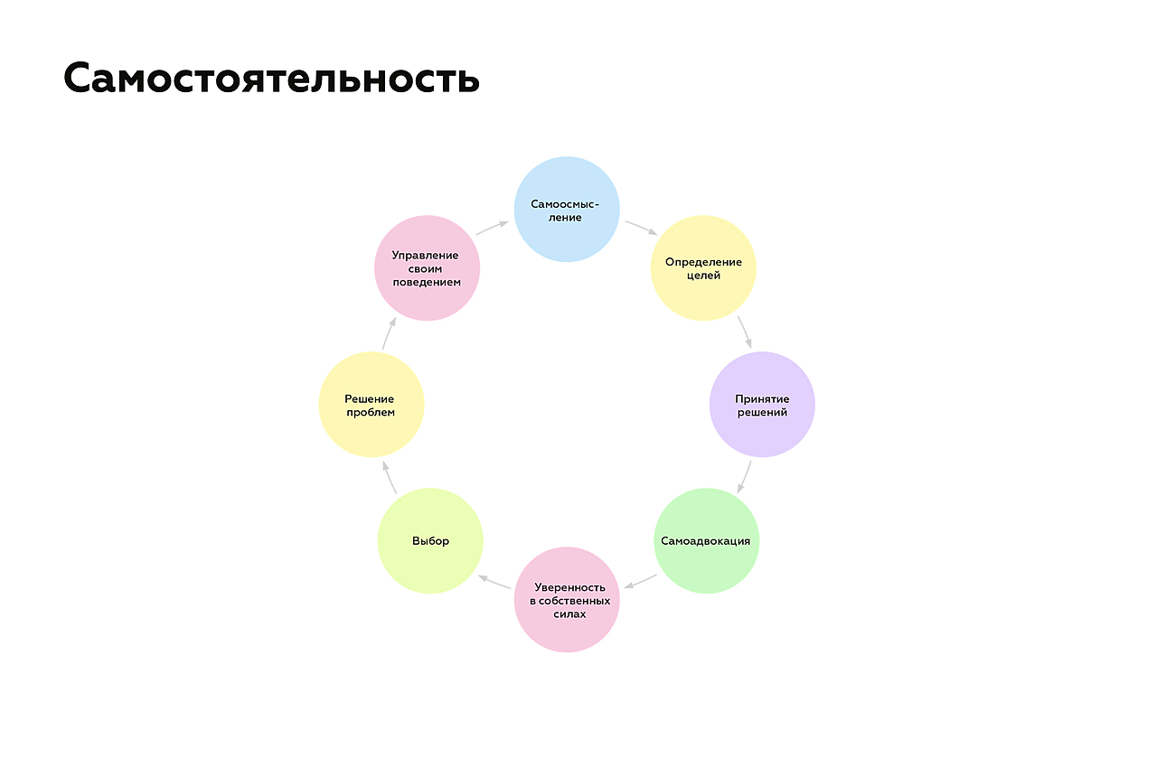 Что же такое «самостоятельность»? Это способность быть независимым, думать, принимать решения и осознавать их последствия. Когда вы принимаете самостоятельное решение, вы чувствуете себя комфортно, если осознаете последствия своего решения. Осознание себя — это способность понимать, кто вы, что вам нравится, что не нравится, что вас интересует, что вами движет и что мотивирует.