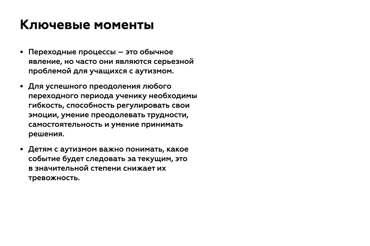 - Переходные процессы — это обычное явление, но они часто являются серьезной проблемой для учащихся с аутизмом.