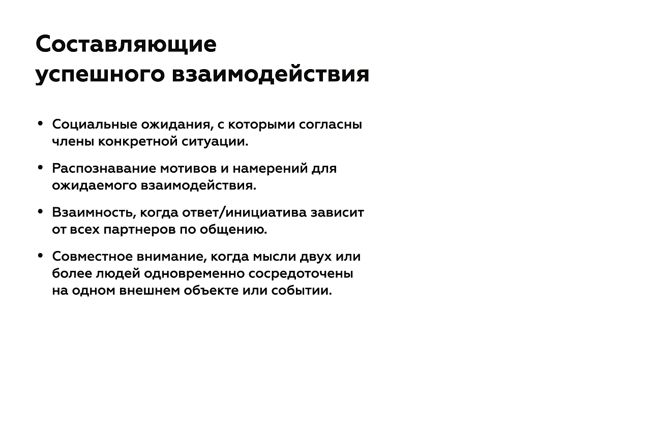 - При социальном взаимодействии от его участников требуется определенный уровень исполнительного функционирования или организации и планирования, а также обмен эмоциональными реакциями.