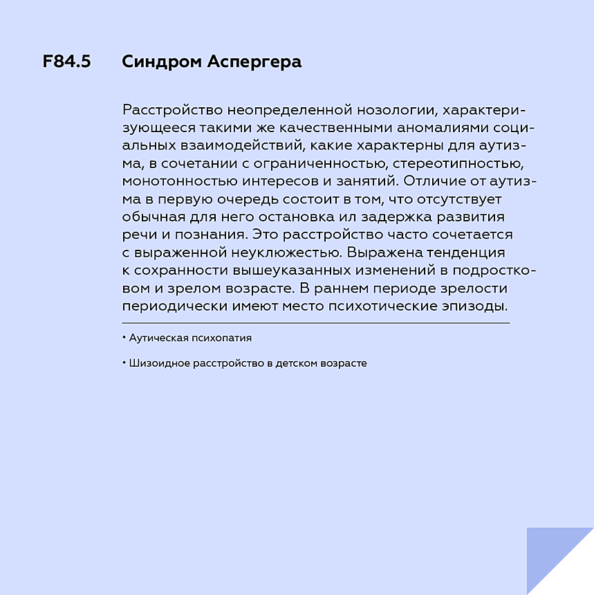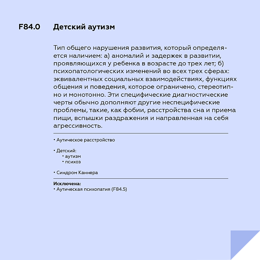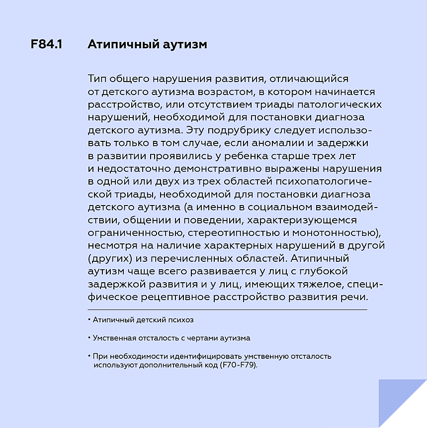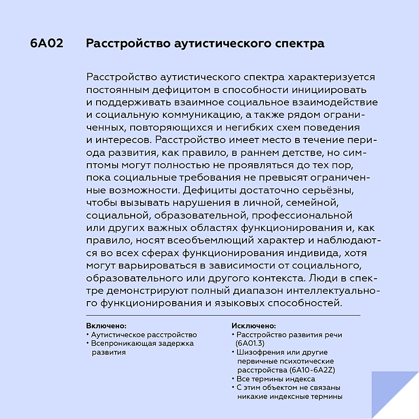 Как известно, в России поставить официальный диагноз РАС (Шифры F84.0, F84.1, F84.4, F84.5, F84.8, F84.9 по МКБ-10; 6A02.0, 6A02.1, 6A02.2, 6A02.3, 6A02.5, 6A02.Y, 6A02.Z по МКБ-11. — Примеч. ред.) может исключительно психиатр. Из-за отсутствия какого-либо биологического маркера1 диагноз ставится на основе оценки поведенческих проявлений согласно диагностическим критериям Международной классификации болезней (МКБ)2. Однако в мировой практике, особенно в странах, в которых в диагностике РАС участвует более широкий круг специалистов (педиатры, психиатры, психологи, неврологи), значимое место занимает использование различных диагностических инструментов, позволяющих уменьшить влияние субъективного мнения врача или другого специалиста при оценке состояния ребенка.