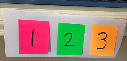 4. Разноцветные стикеры для визуального расписания. Напишите на стикерах цифры (например, 1, 2, 3) и расположите их в ряд для расписания. Если ребенок не знает цифры, вы можете просто использовать стикеры, совпадающие по цвету. Некоторым детям нужно снимать стикер, физически приклеивать его на такой же стикер на контейнере, и так они понимают, что делать сейчас. Другим достаточно посмотреть на расписание.